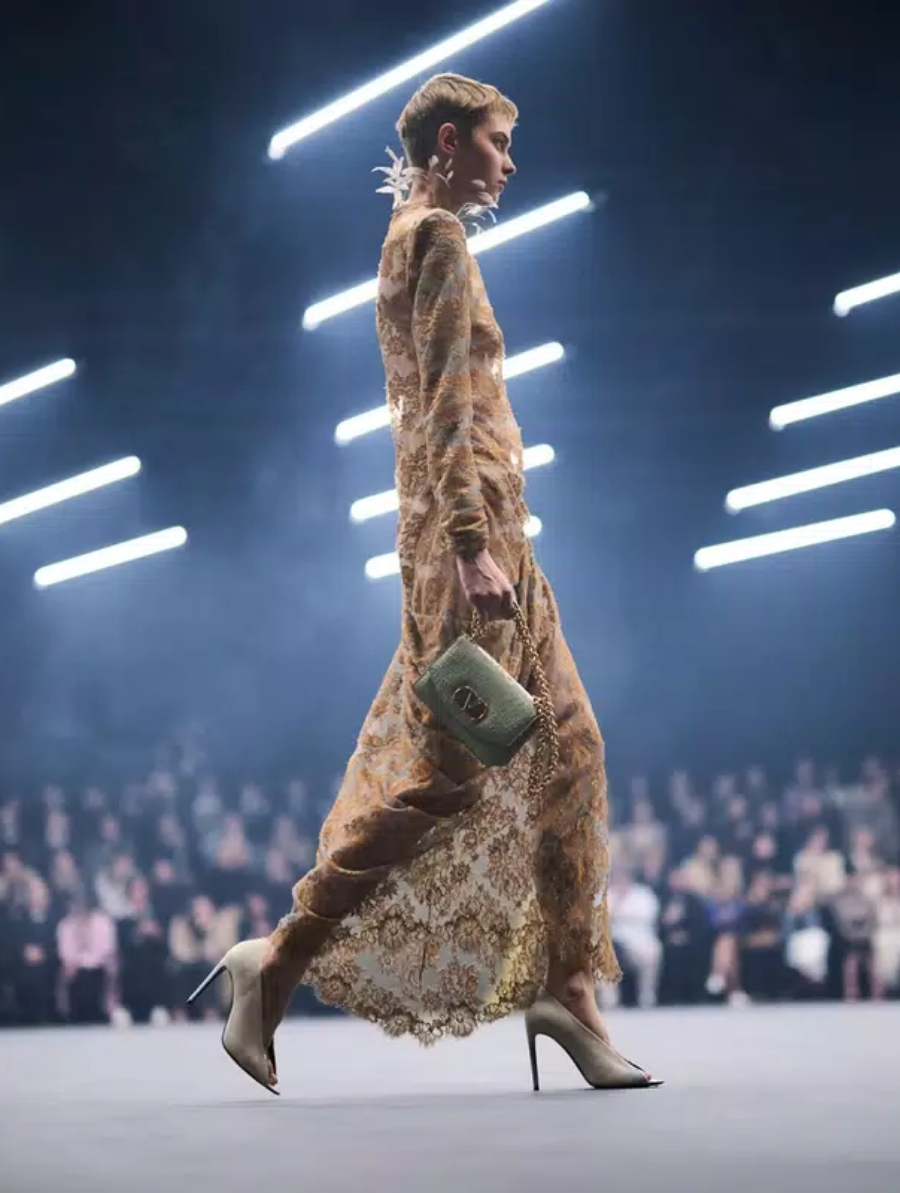 Revija je održana pod treperavim, stroboskopskim svetlima, koja su oponašala pokret svitaca u noći. Glas Pamele Anderson, koja je čitala show notes, dok su modeli izlazili u ritmu svetlosnih impulsa. „Moramo razoružati oči i ponovo probuditi pogled,“ čula se u pozadini rečenica koja je savršeno sažela ono što Michele pokušava da učini sa Valentino kućom: da vrati sposobnost gledanja srcem, a ne navikom.